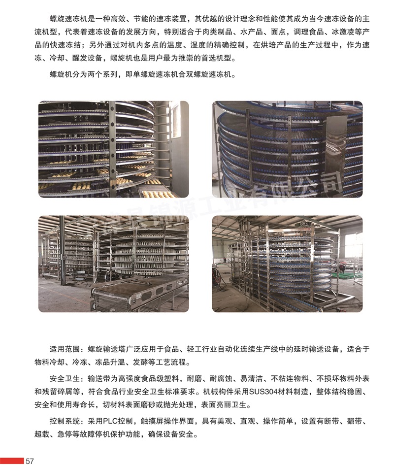 4.螺旋塔可以作為面包、食品、物料的冷卻設備。那么,這種設備有什么優(yōu)點呢?螺旋冷卻塔,簡稱螺旋塔,如果用于面包店,主要用于冷卻蛋糕、漢堡、蛋撻、月餅、土司、法式小面包、毛毛蟲、普通面包等多種食品。根據(jù)冷卻的大小來劃分,有大型螺旋塔、中型螺旋塔、小型螺旋塔。根據(jù)冷卻的流程來劃分,有單塔和雙塔兩種類型。它運用的是換熱設備的勢能、設備的自動調(diào)節(jié)能力、動能轉(zhuǎn)換效率等等。