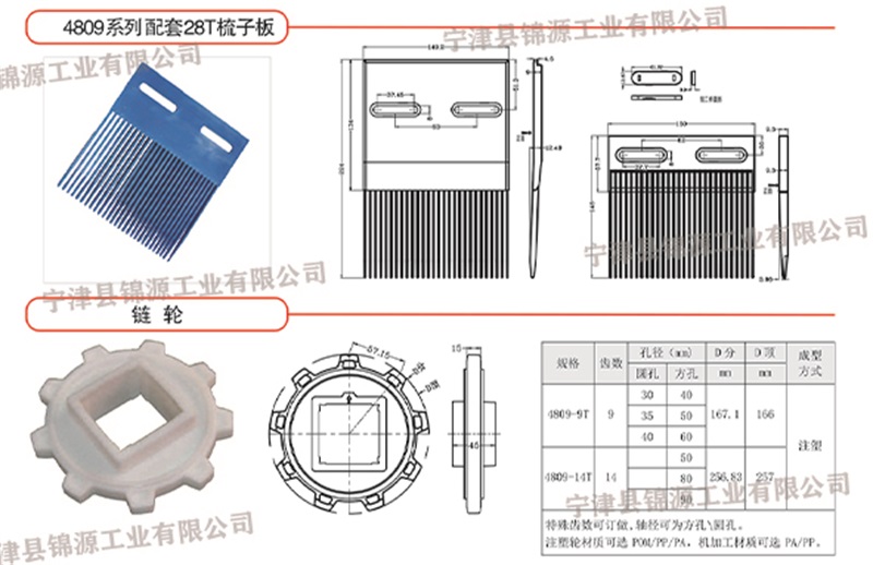 加強片以交錯方式組合而成,應在2列之上,盡可能以偶數(shù)列安裝,以便傳動鏈輪以奇數(shù)放置。注:加強片必須配合不銹鋼銷軸使用。