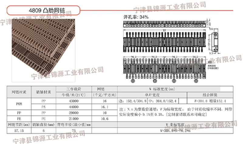 節(jié)距57.15mm 材質PP、POM 厚度23.8mm 開孔率34%